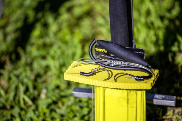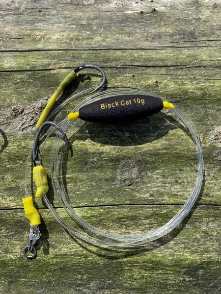 Waller Spezial ready-made leader from Stefan Seuß. The Anti Tangle Rig ensures tangle-free bait presentation just off the bottom in stillwaters or on flowing water. Between the u-float and the first hook is a length of stiffening rubber tube, which acts as a boom and makes twisting of the bait almost impossible. The Anti Tangle Rig is ideal for presenting baitfish and other natural baits just off the bottom. The single hook is fixed to the head of the baitfish while the ghost hook in the rear of the baitfish ensures maximum bite conversion.