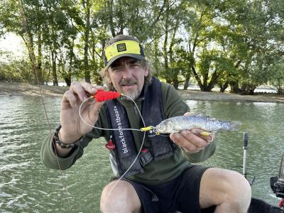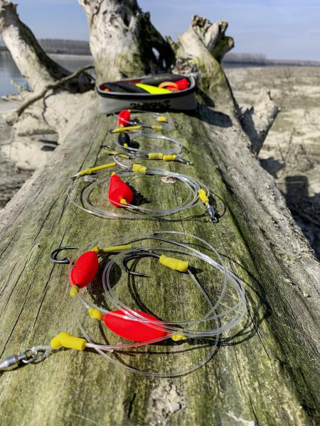 Waller Spezial ready-made leader from Stefan Seuß. The Baitfish Tree Rig is ideal for presenting baitfish and other natural baits just off the bottom. The Tree U-Float is affixed as a floating device, whose spiral-shaped body creates pressure waves and swirling above the bait, driving catfish crazy. The bait is attached on the hair rig comprising two single hooks.