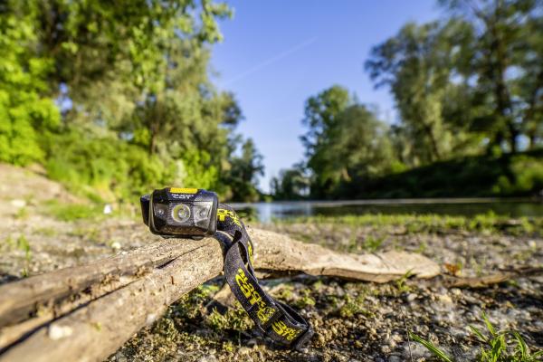 Very bright LED head torch with a maximum light output of 150 lumens and a light range of 100 metres. Comfortable to wear with a weight of only 48g and a sweat-resistant, adjustable headband. Wet-proof: watertight to the IPX6 standard. Changeable modes: white-strong, white-weak, red light mode and SOS function.