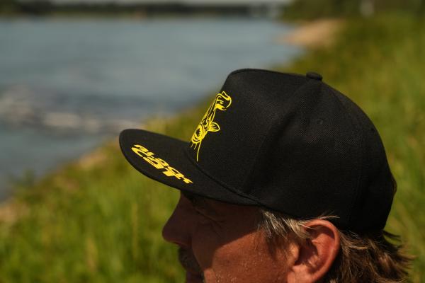 The Black Cat black flat peak cap - modern looks for a modern angler.