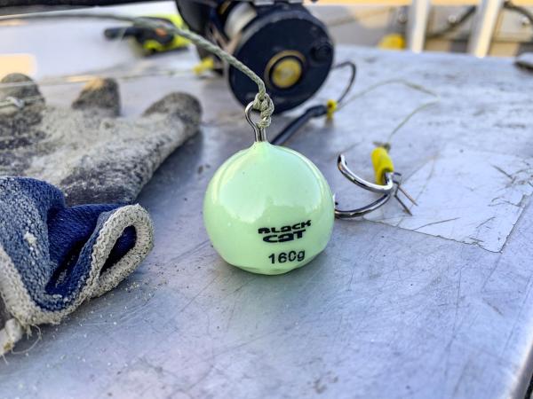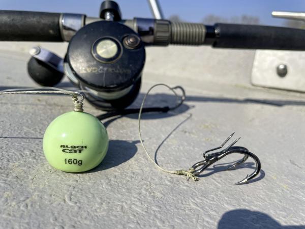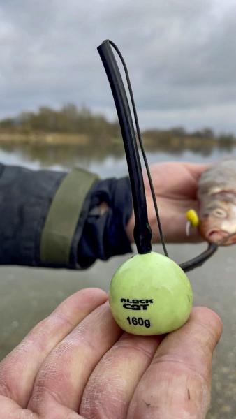 The Cat Ball is without doubt the most effective way to build effective vertical rigs. The vertical head comprises a heavy lead covered with a rubber coating in glow-in-the-dark or matt black colours and has a round design with a flattened underside. This allows the bait to be presented on the bottom without making a sound. Two stainless steel eyes protruding at 90-degree angles offer the perfect fixing points for the main line and the bait and enable rapid baiting as well as extended bait presentation without tangling.