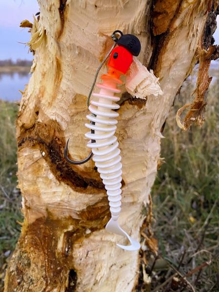 The Curly Worm with a length of 17 cm is a soft lure specially developed by Stefan Seuß and has outstanding retrieve properties. The convex shape, resembling a fish skeleton and comprising several soft, successive rubber ribs, perfectly imitates the swimming action of likely prey. At the end of the lure is a high-frequency twister tail. Ideal for casting with a spinning rod or vertical fishing just off the bottom. Even with a slow retrieval of the Curly Tail when spinning, or during the pausing stage when vertical fishing, the water pressure flowing through the ribs creates an attractive swimming motion that ripples through the entire fish body. For an optimal hook position, there is a recess in the back of the Curly Tail where a jig hook, or ideally the BC Claw Single Hook can be perfectly mounted.