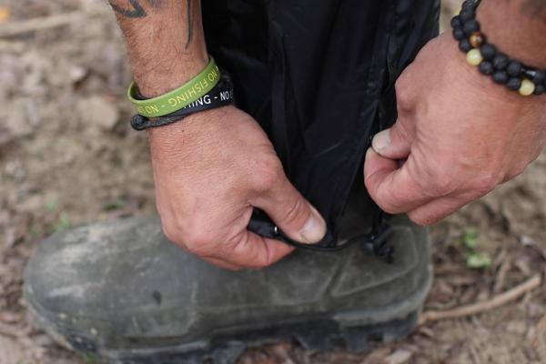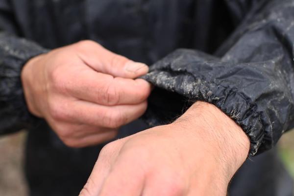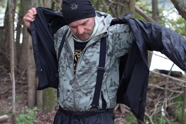 Waterproof and dirt-resistant outfit for catfish anglers. The Slime Combo can be worn over the angler's normal clothing to protect against the rain and simultaneously protects the angler's undergarments against mud and slime when handling catfish. Particularly recommended when taking photos of catfish since the slime coating of the fish is better protected with the Slime Combo.